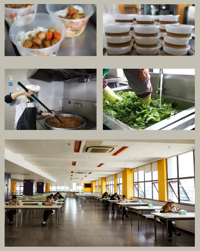 细心的工作人员提前制作大批办公遮挡板,,,,为员工安心办公设立一道安全屏障,,,,隔离病毒却不能隔离同事情谊,,干净整洁的办公室比往日安静许多,,响起的是敲击键盘的哒哒声,,,少了往日亲切交谈、、、、你来我往的沟通——疫情背景下,,,话虽少但心却更近了。。 复工第三关:用餐防护 食堂工作人员自己全面做好防控措施的同时,,,严把原材料关,,,保证饭菜制作全过程安全、、卫生。。。午餐采取各楼层配餐方式,,谢绝外部人员进入用餐、、、杜绝外卖送餐。。在餐厅用餐者需二次量体温,,,,隔位入座用餐。。。 防控在前,,安全复产