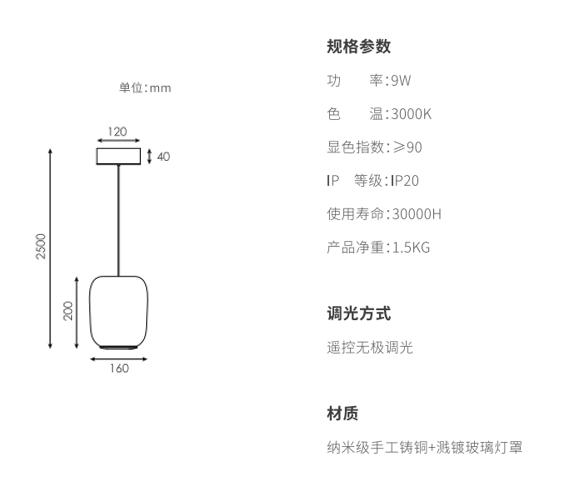 产品简介:手工吹制高硼硅玻璃,,,,圆润柔和;在内部的上路光透过玫瑰金色网格铸铜件投射出类似烛火的效果,,,,在空间里显得更加灵动,,,外层玻璃采用溅镀金属质感,,自下而上渐消,,,,同时镜面镀层折射环境光线,,,使产品更加轻盈通透不压抑,,下路光采用直下光,,,,满足1.5米圆桌面充足照明。。。同时设计有防眩格栅,,,桌面边缘的视线高度不会有直接光线照射到,,体验舒适。。。